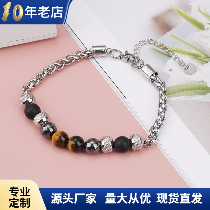 European and American Cross-Border Best-Selling Amazon Vintage Stainless Steel Natural Stone Red Tiger Stone Map Personalized Fashion Couple Bracelet