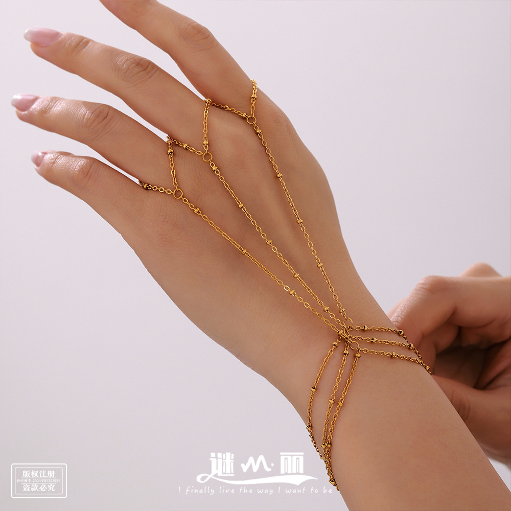 Enigma Limi bead finger chain European and American ins style stainless steel 18k gold plated bracelet does not fade women's personalized hand jewelry