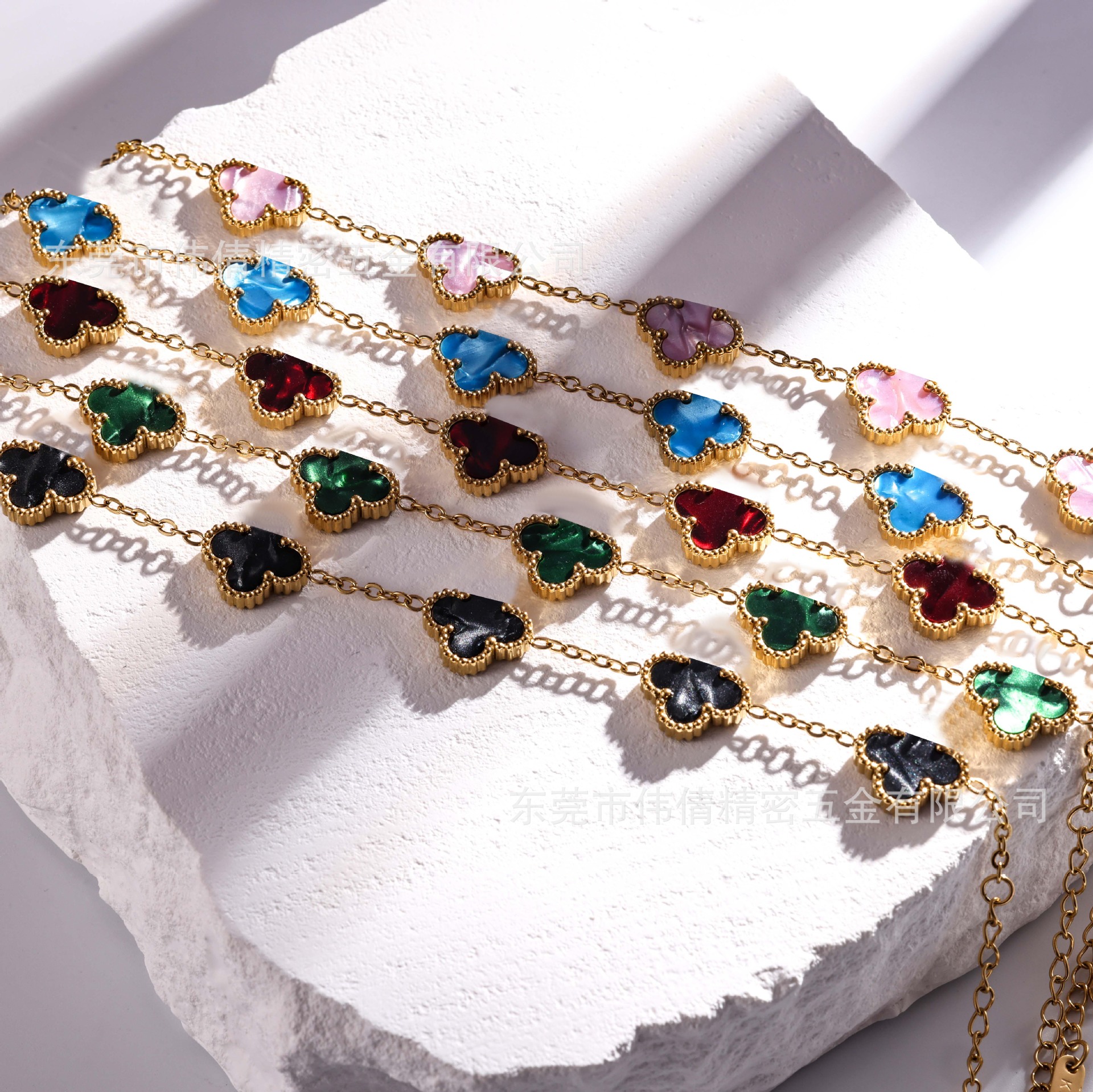 Cross-Border Hot-Selling Stainless Steel 18Kv Gold Four-Leaf Clover Bracelet Women's Double-Sided Colorful Mother-Of-Pearl High-End Jewelry Wholesale