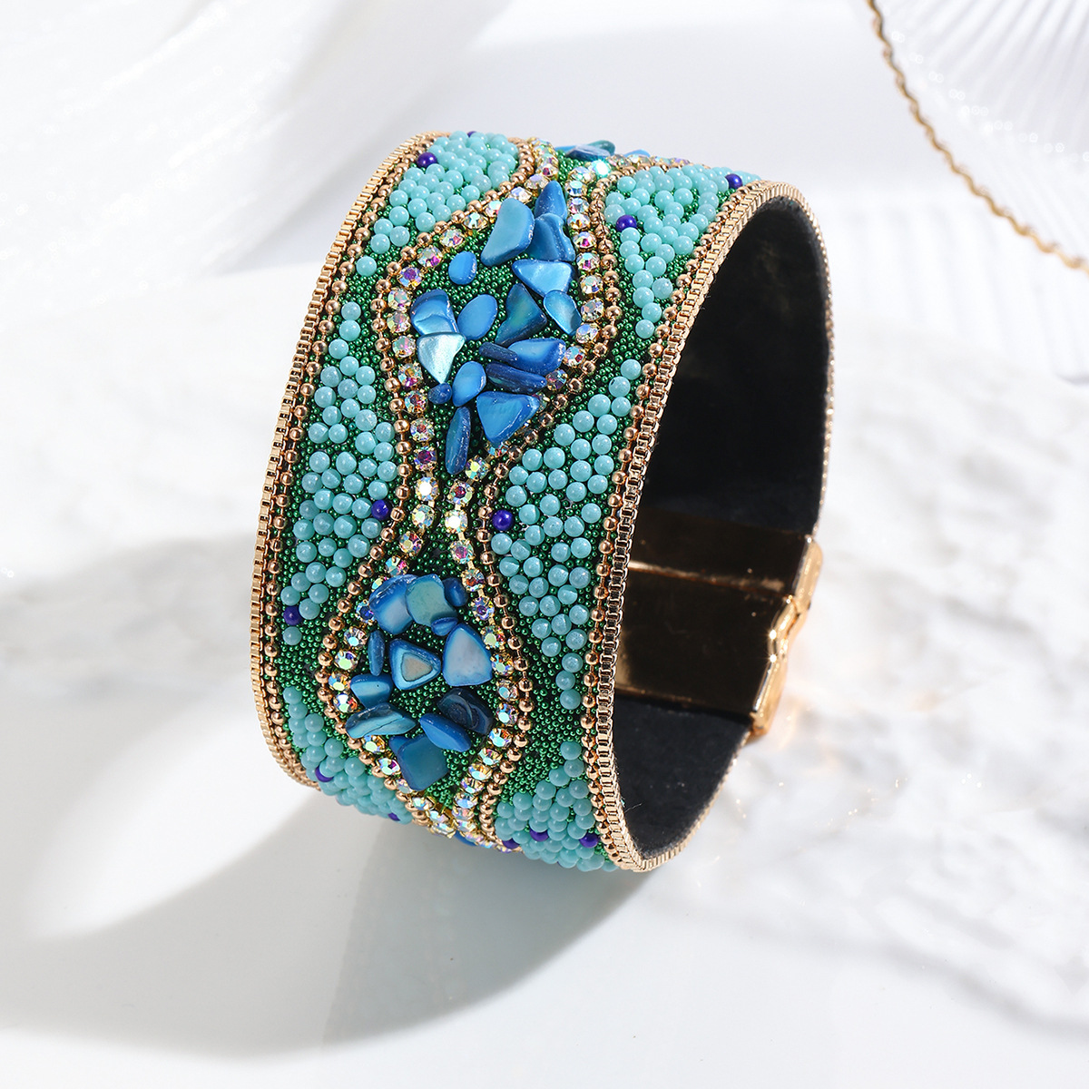 Cross-border Trade Gravel Rice Bead Leather Bracelet Bohemian Gem Bracelet Stainless Steel Magnetic Buckle Women's Handpiece