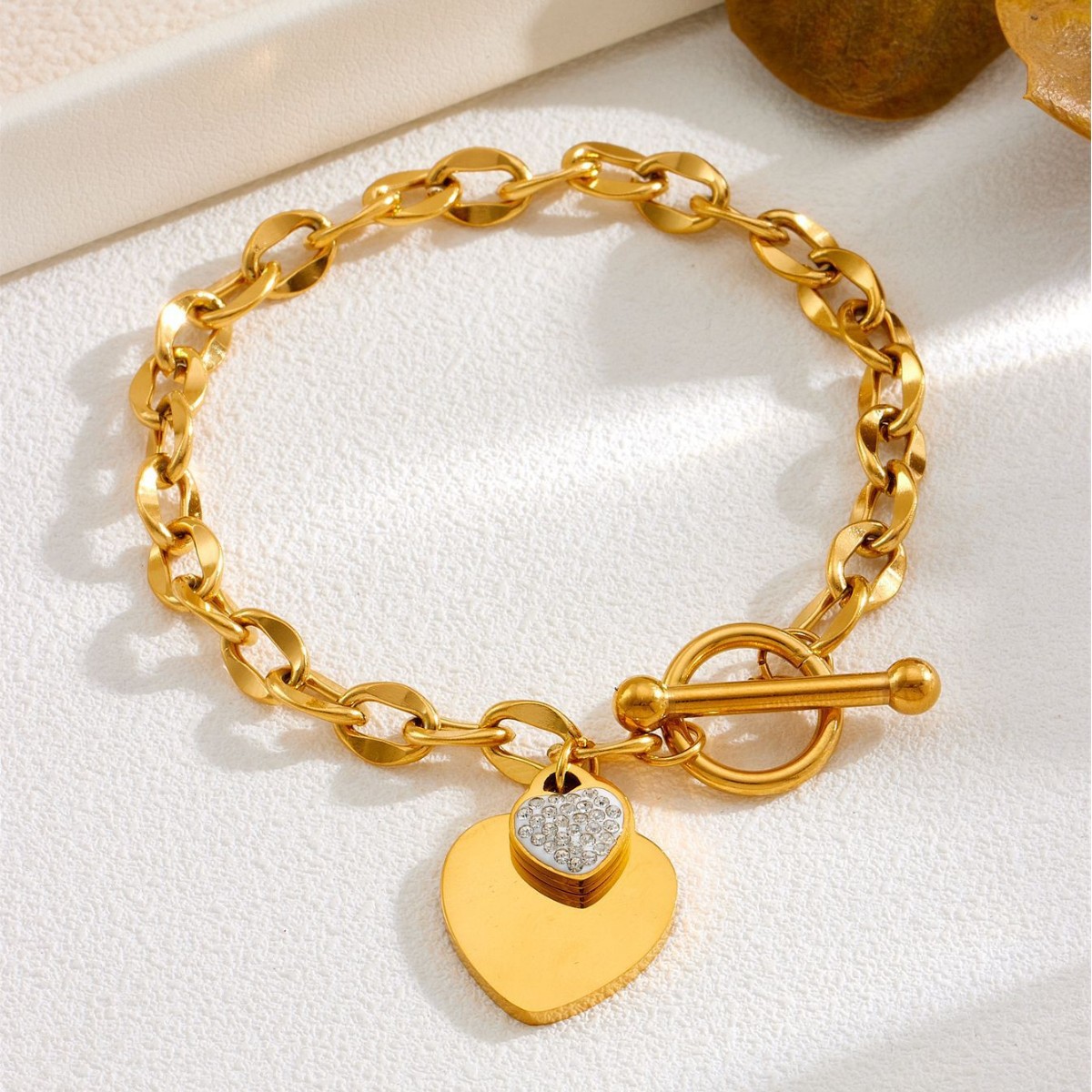 European and American Cross-Border Supply Heart Stainless Steel Jewelry Personalized Versatile Hand Jewelry Ot Buckle Popular Titanium Steel Bracelet