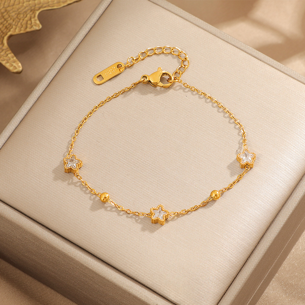European and American Fashion Titanium Steel Star Bracelet Jewelry, Personalized Elegant, Accessible Luxury, High-Grade Stainless Steel Five-Pointed Star Zircon Bracelet