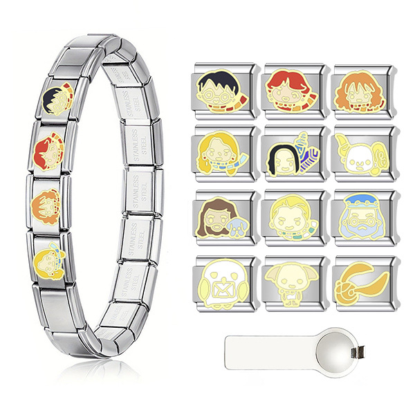 New Stainless Steel Italian Module Bracelet with Dly Anime Magician Pattern, Can Be Freely Matched and Spliced