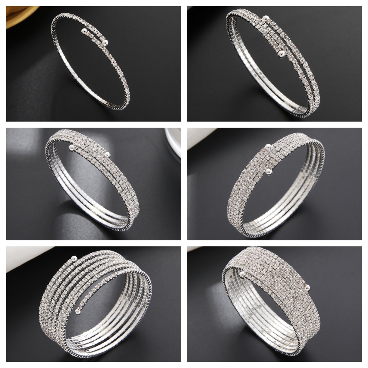 Cross-border Hot Selling Women's Full Diamond Steel Wire Elastic Bracelet Arm Chain Multi-row Optional Bridal Stage Jewelry B152