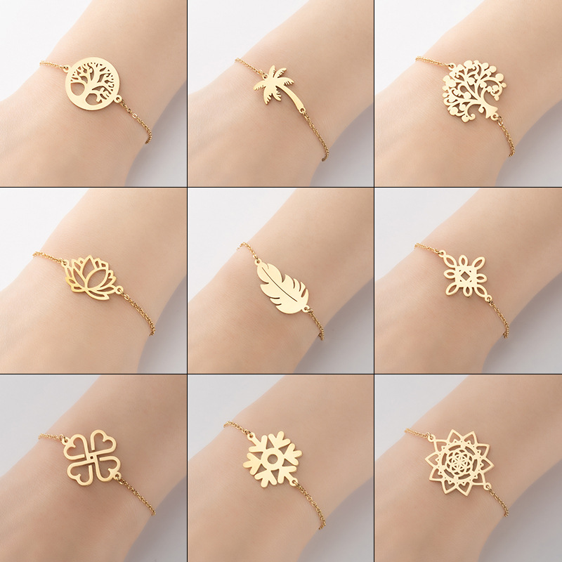 Casual European and American Cross-Border New Ins Fashion Tree of Life Flower Stamen Bracelet Fashion Personalized Feather Hand Jewelry