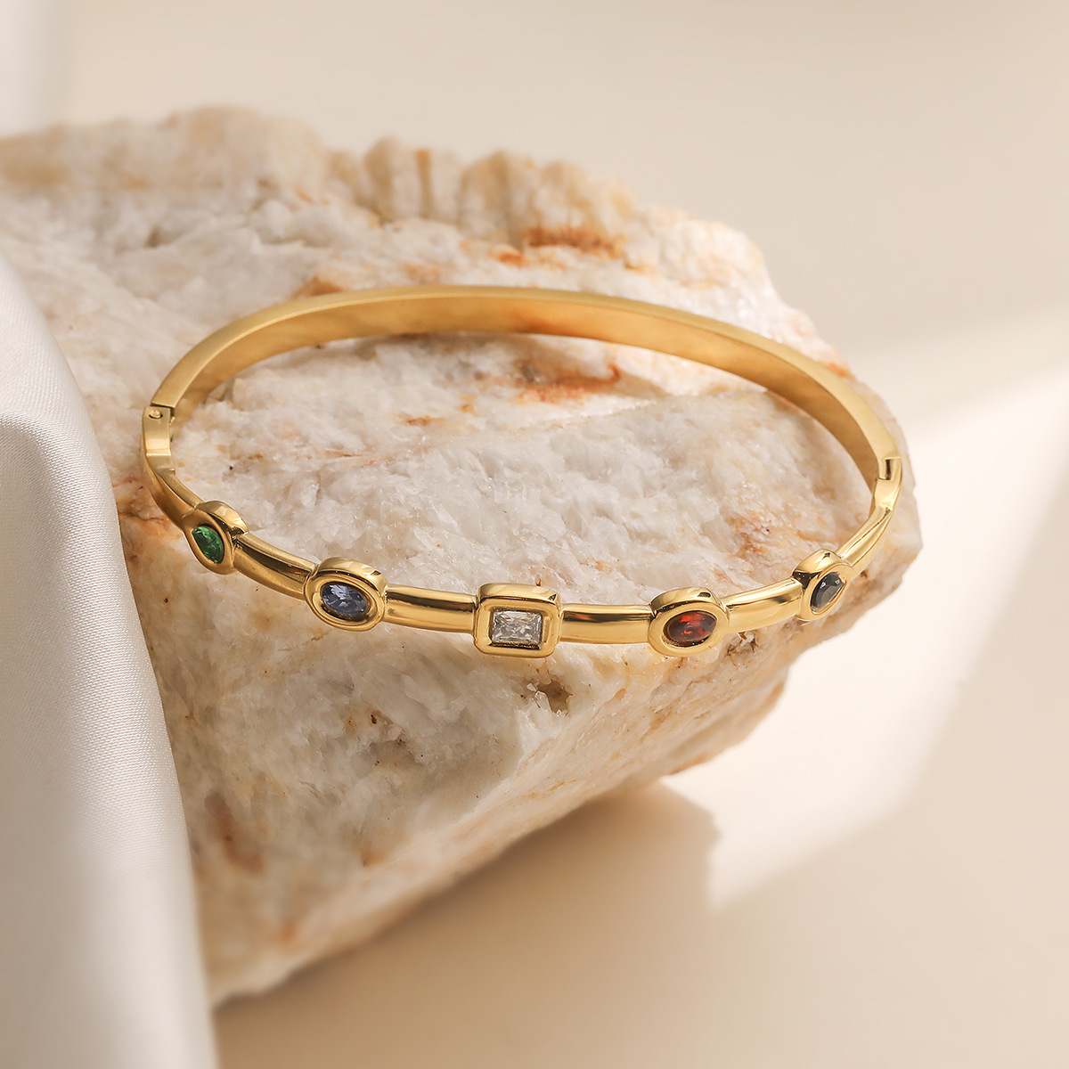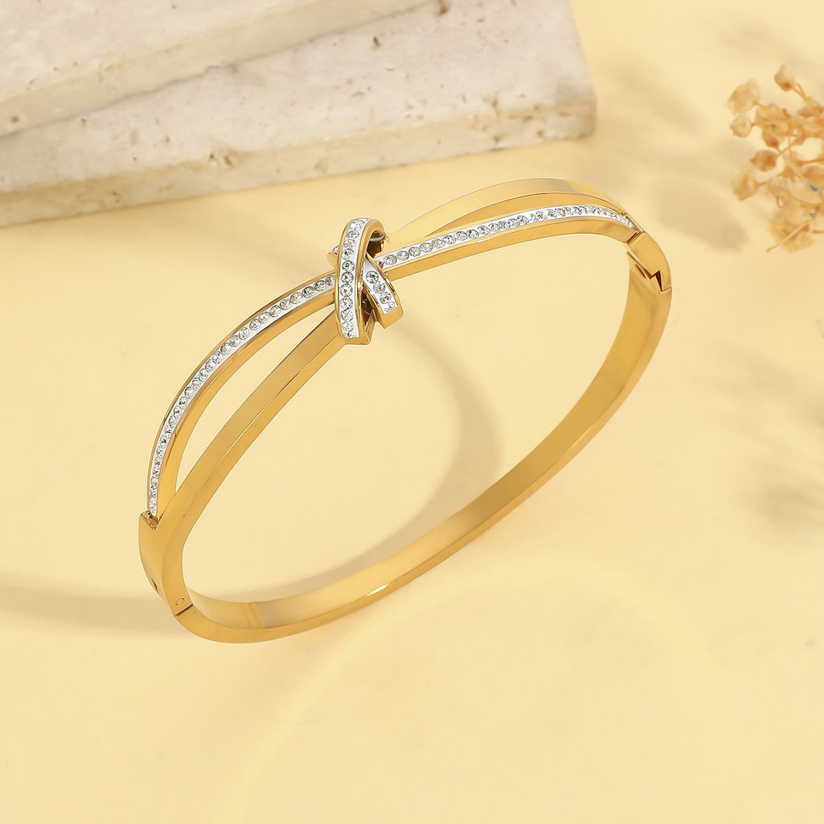 Aogu Cross-Border Hot-Selling Niche High-End 18K Gold-Plated Zircon Stainless Steel Bracelet for Women Ins Retro Personalized Bracelet