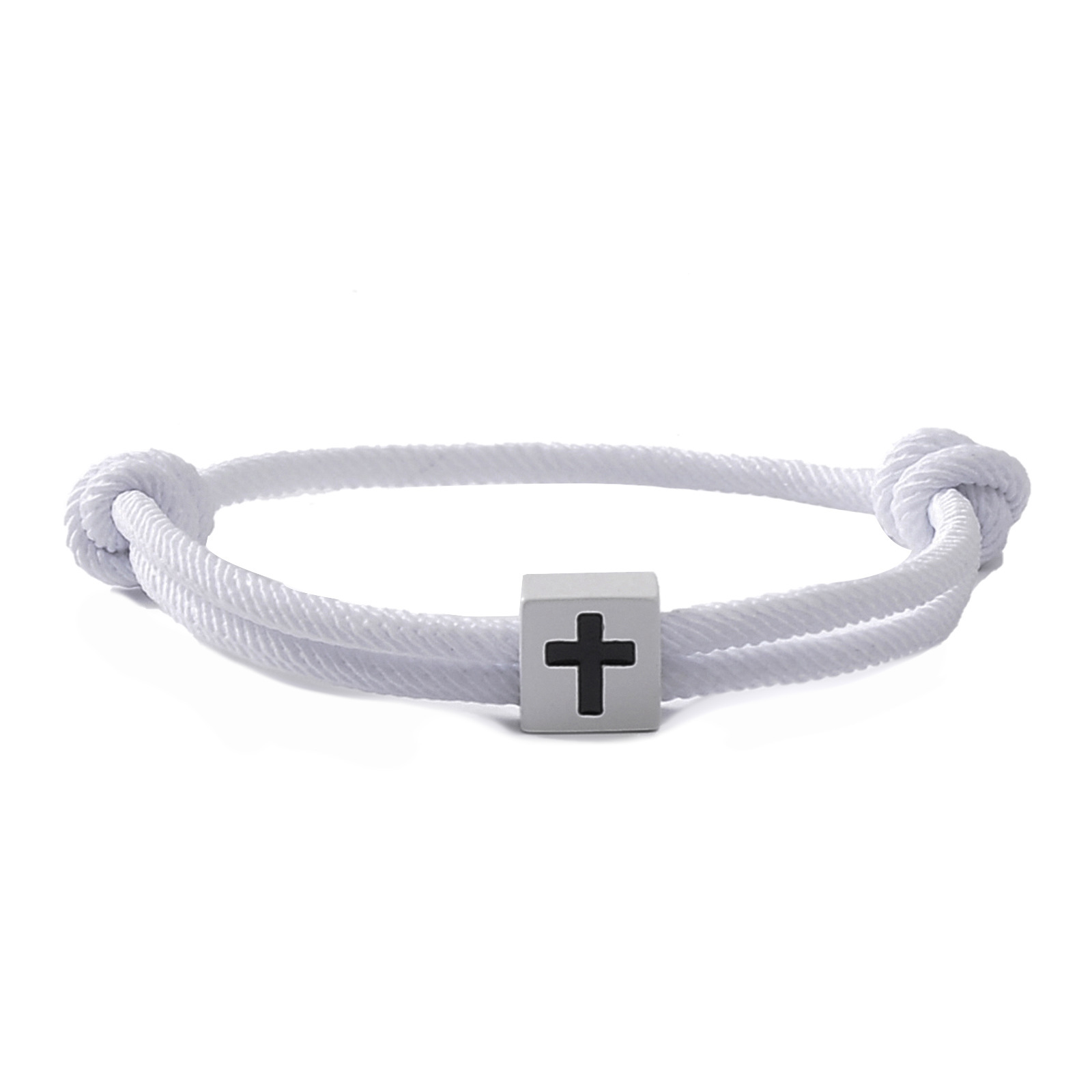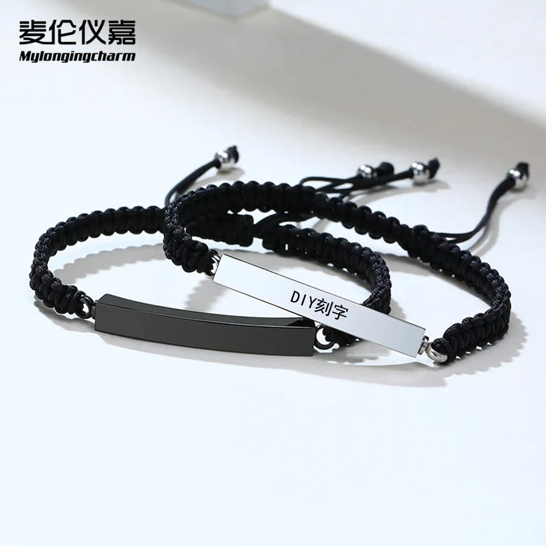 Couple Bracelet suit Hand-woven Adjustable Stainless Steel Block Engraved Black and White Milan Rope Cross Bracelet