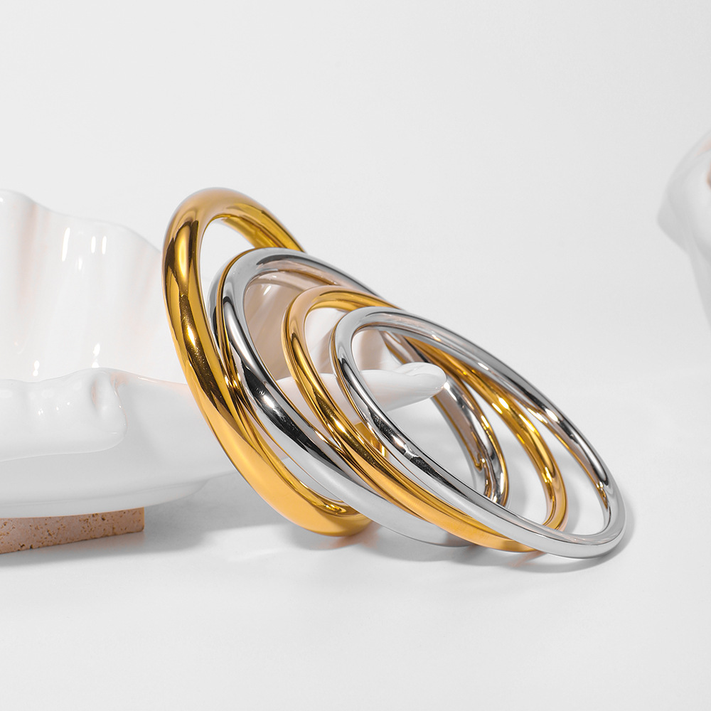 Cross-border new simple high-end round bracelet smooth stainless steel ring bracelet jewelry 18K gold women's jewelry