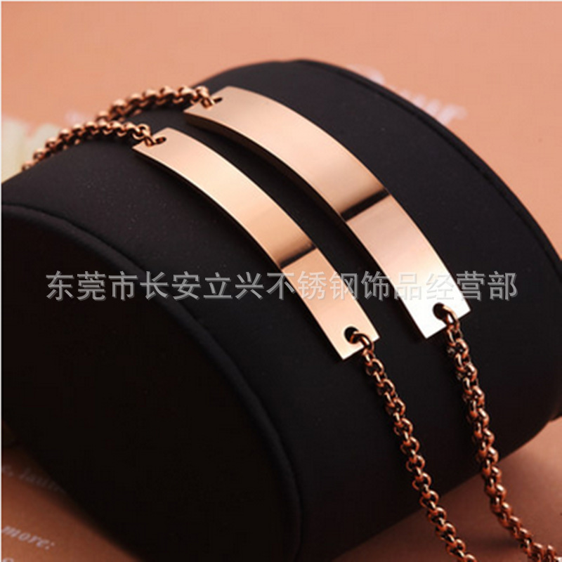 Titanium steel couple glossy bracelet lettering stainless steel jewelry Japanese and Korean creative simple ring Pearl Chain