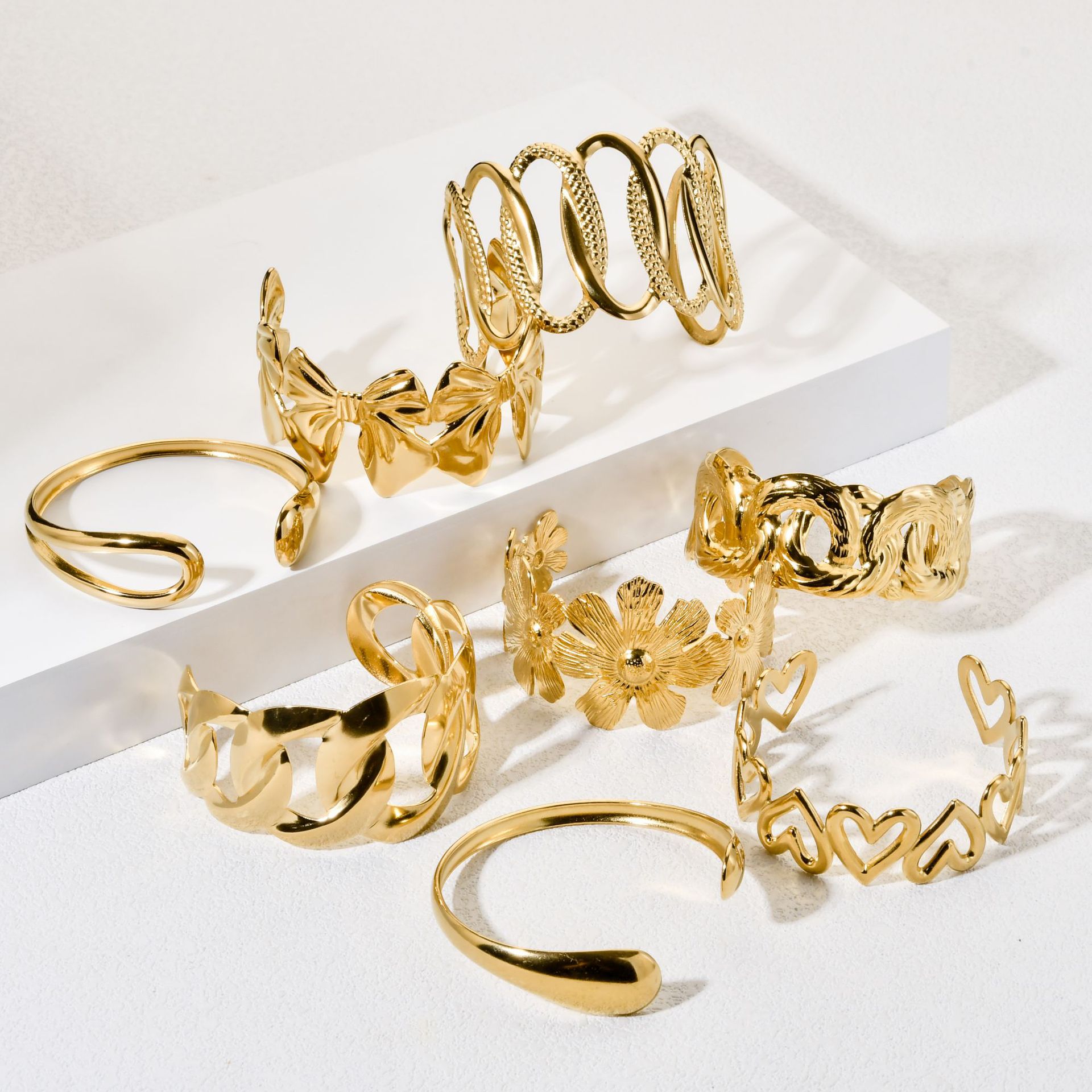 European and American Cross-Border Stainless Steel Oil Pressure Smooth Bracelet Butterfly Flower Ring Opening Light Luxury Niche Design Bracelet