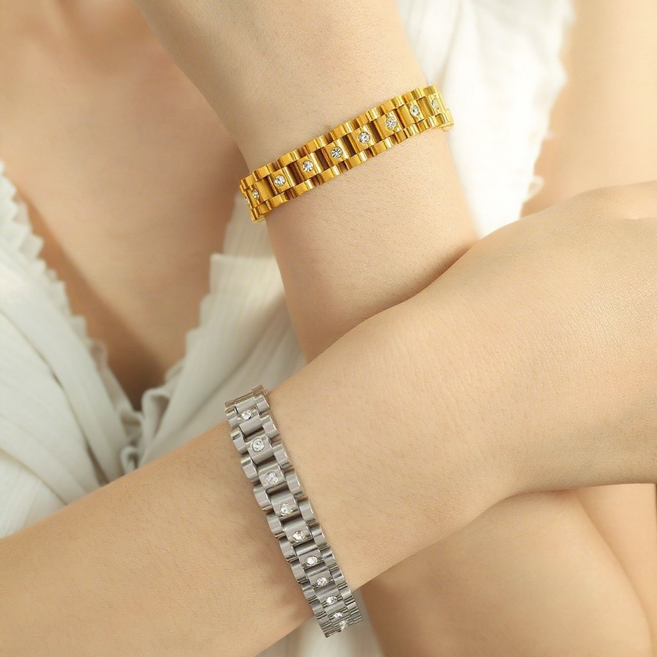 European and American Ins Influencer Picks the Same Metal Style Stainless Steel Bracelet Pvd Plated 18K Gold Watch Strap Bracelet Bracelet