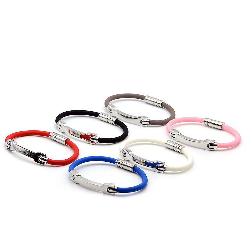 Cross-Border Japanese and Korean Style Stainless Steel Curved Bracelet Fashion Silicone Wristband Sports Wristband Unisex Bracelet Wholesale