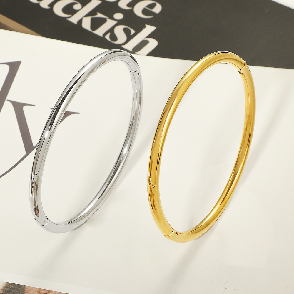 Plain Ring Glossy Bracelet Titanium Steel Round Simple Ancient Stainless Steel 18K Gold Bracelet Manufacturer Wholesale Buckle Bracelet