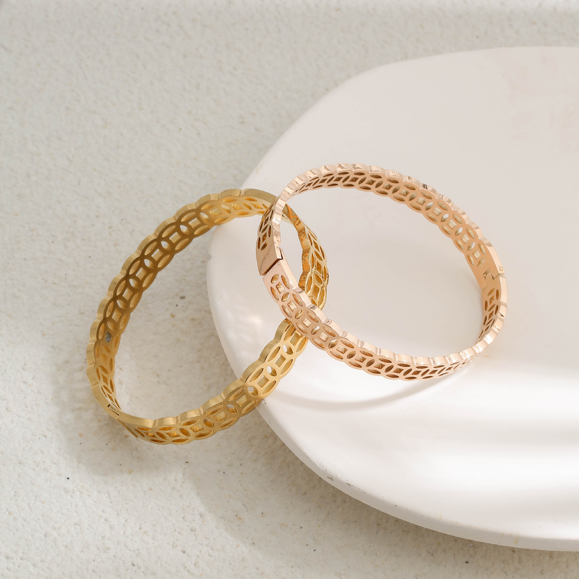 European and American Amazon Hot Ins Style Stainless Steel Titanium Steel 18K Gold Rose Gold Steel Color Fashion Copper Bracelet