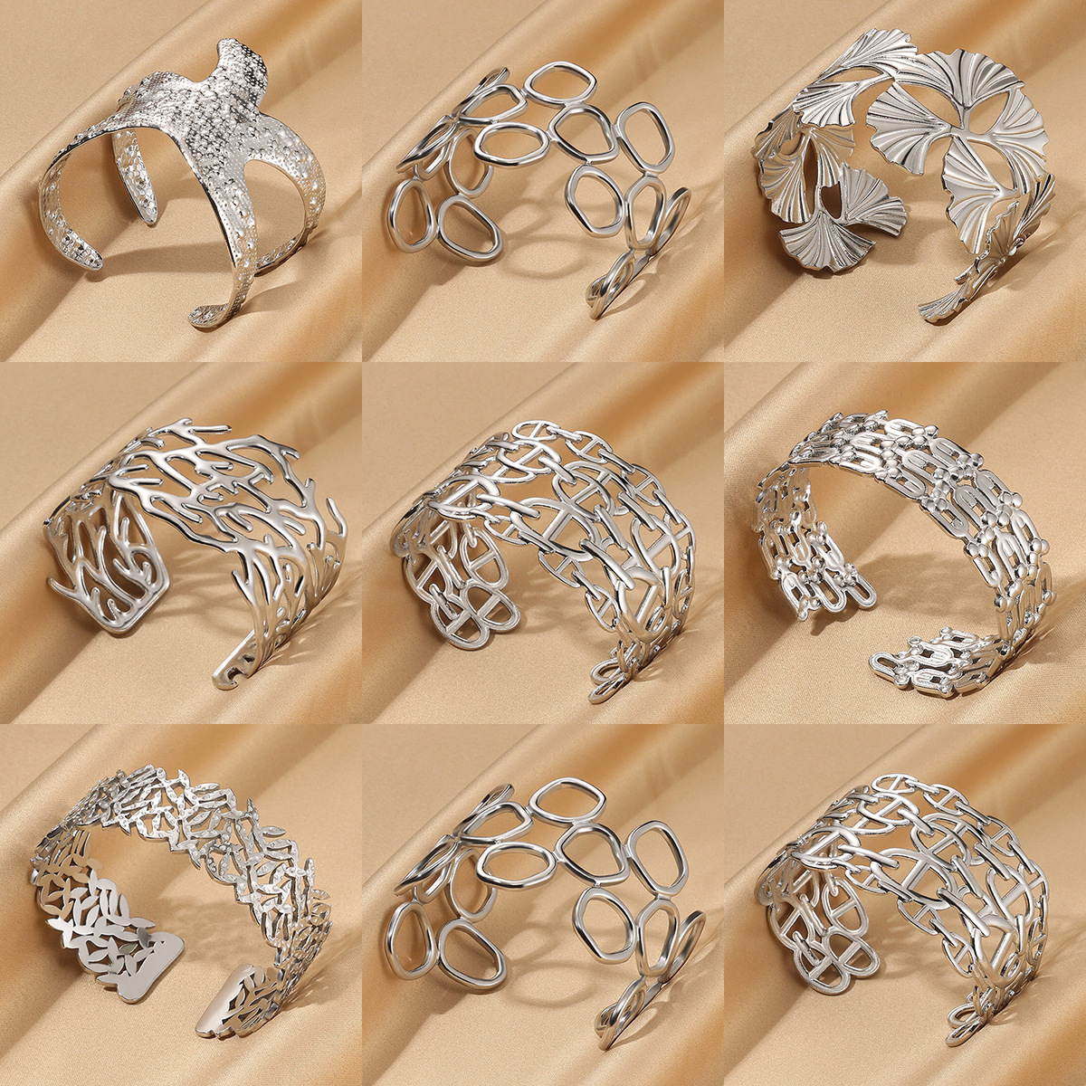 European and American New Style Simple Wide Stainless Steel Open Bracelet Shell Beach Series 18K Gold Titanium Steel Bracelet