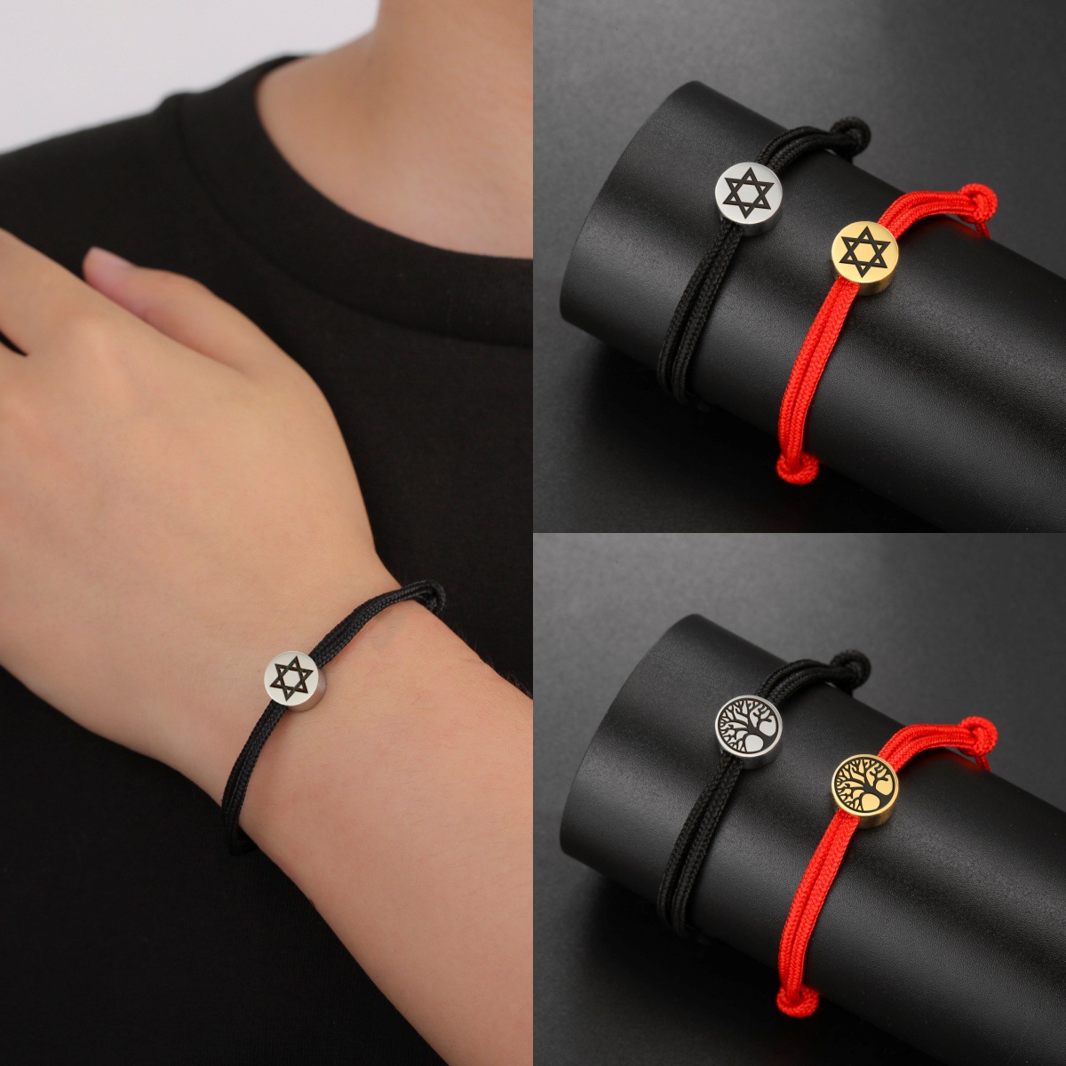 European and American Amazon new engraved titanium steel leather bracelet Korean style stainless steel ins fashion lucky bracelet