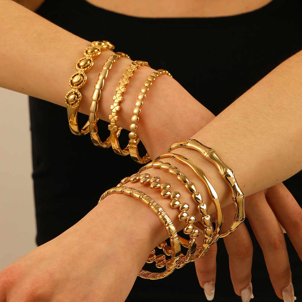 Foreign Trade Hot Light Luxury High-end Charm Geometric Bamboo Bracelet for Women Stainless Steel Jewelry 18K Gold suit