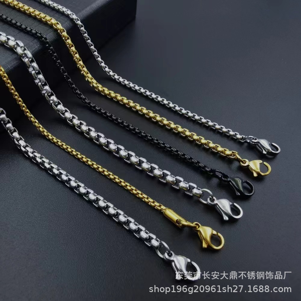 Stainless Steel Chain Square Pearl Chain Cross Border Necklace Tide Titanium Steel Jewelry Accessories with Chain