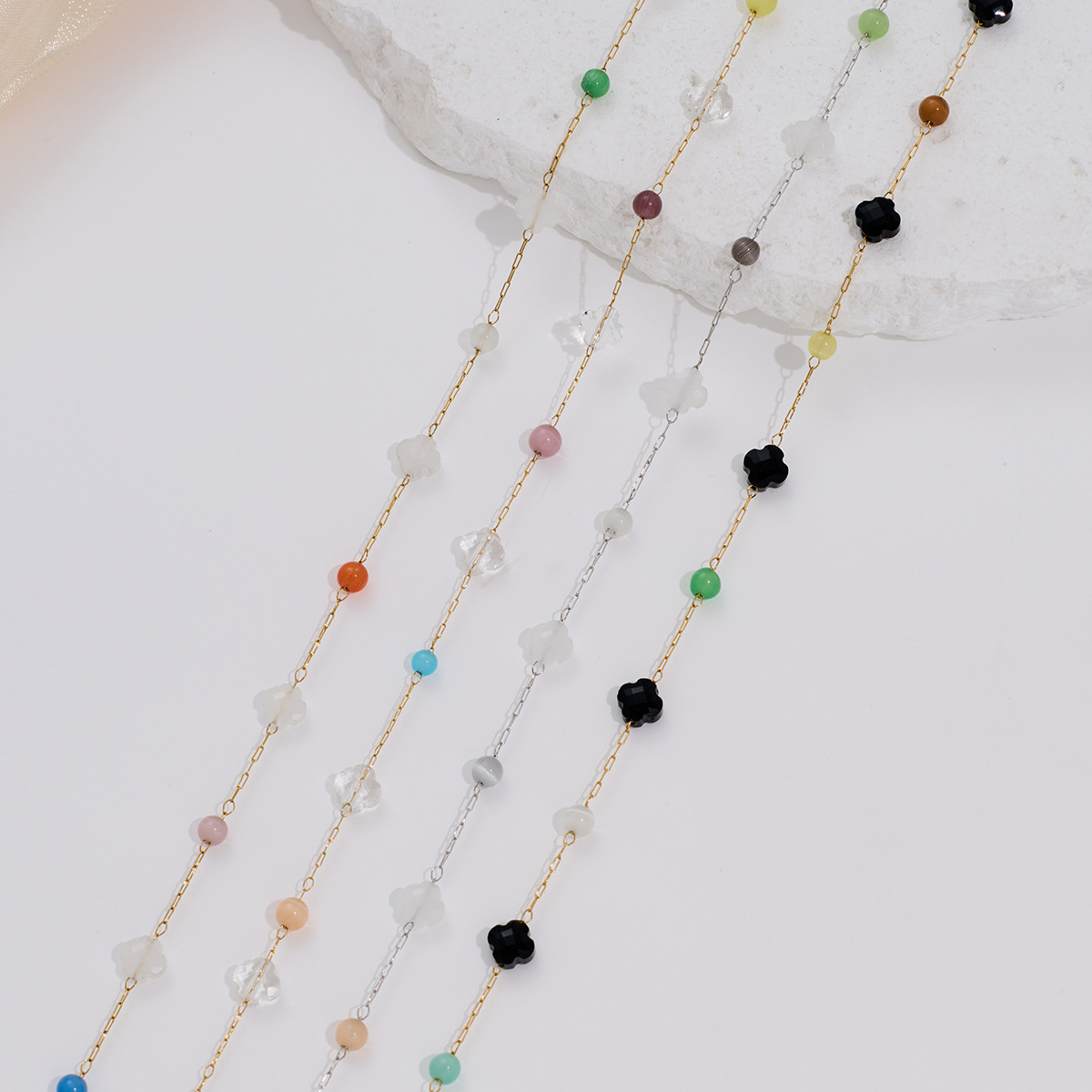 European and American Cross-Border Colorful Natural Crystal Clavicle Chain Simple Stylish Fashion Four-Leaf Clover Stainless Steel Chain Versatile