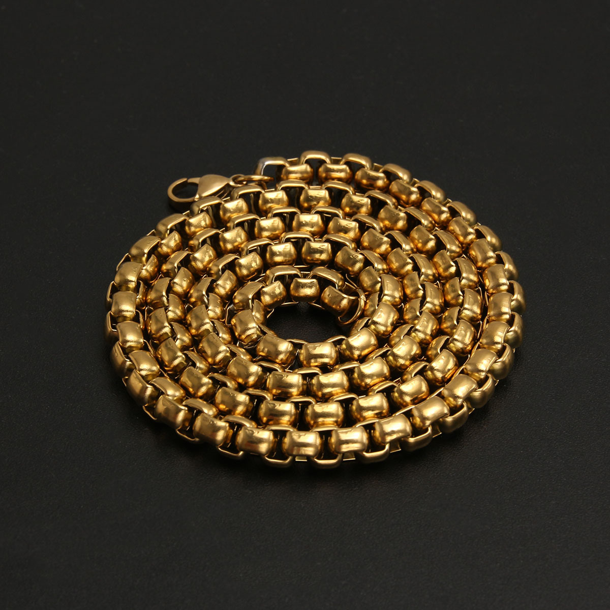 Cross-Border Interlocking Stainless Steel Chain Square Pearl Chain Men's Necklace Trendy Hip-Hop Titanium Steel Jewelry Accessories Chain