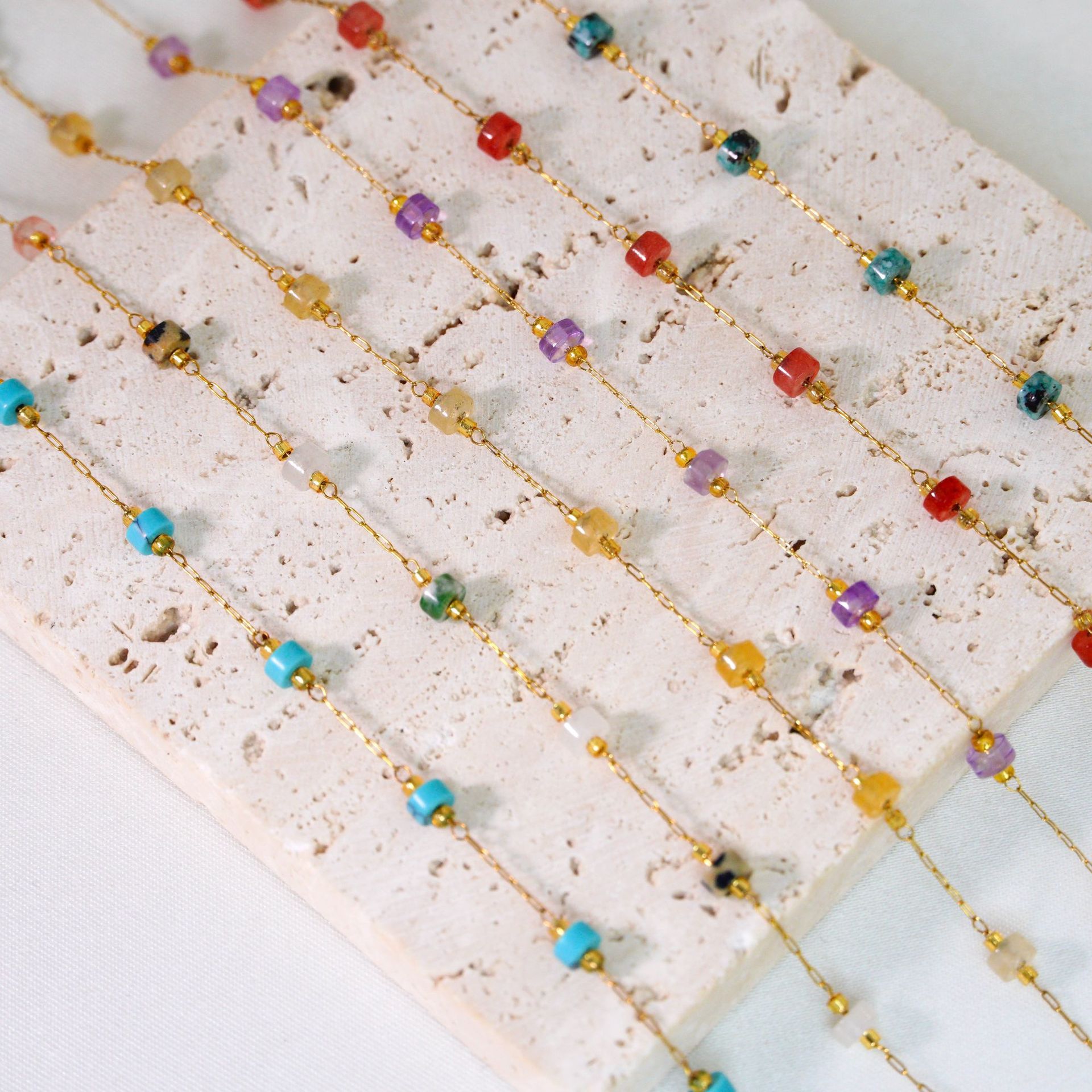 New stainless steel chain natural stone handmade chain necklace bracelet furnace vacuum plating does not fade cross-border jewelry