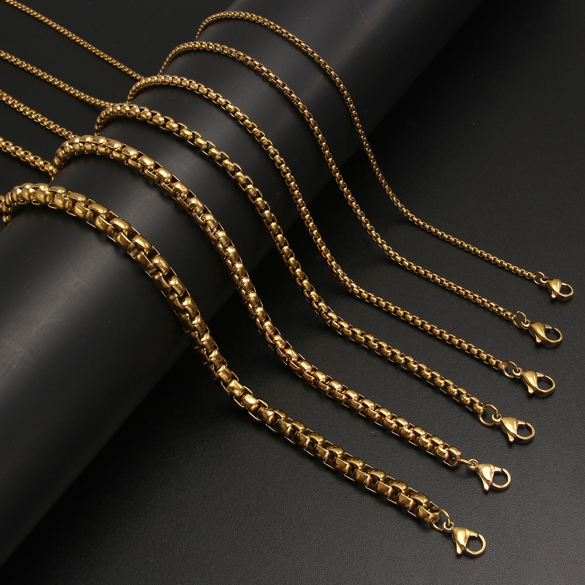 New Style Furnace Real Gold Electroplated Stainless Steel Square Pearl Necklace European and American Hip Hop Men's Titanium Steel Necklace Versatile Jewelry