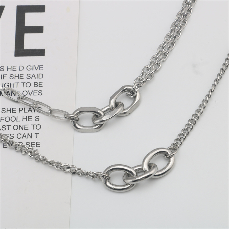 European and American fashion ins titanium steel O-shaped stitching necklace hip-hop trendy creative niche jewelry men and women stainless steel jewelry