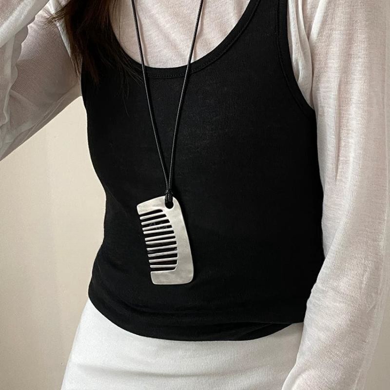 concave shape titanium steel ~ niche design sense comb necklace women's 2024 new sweater chain net popular ins style sweater chain