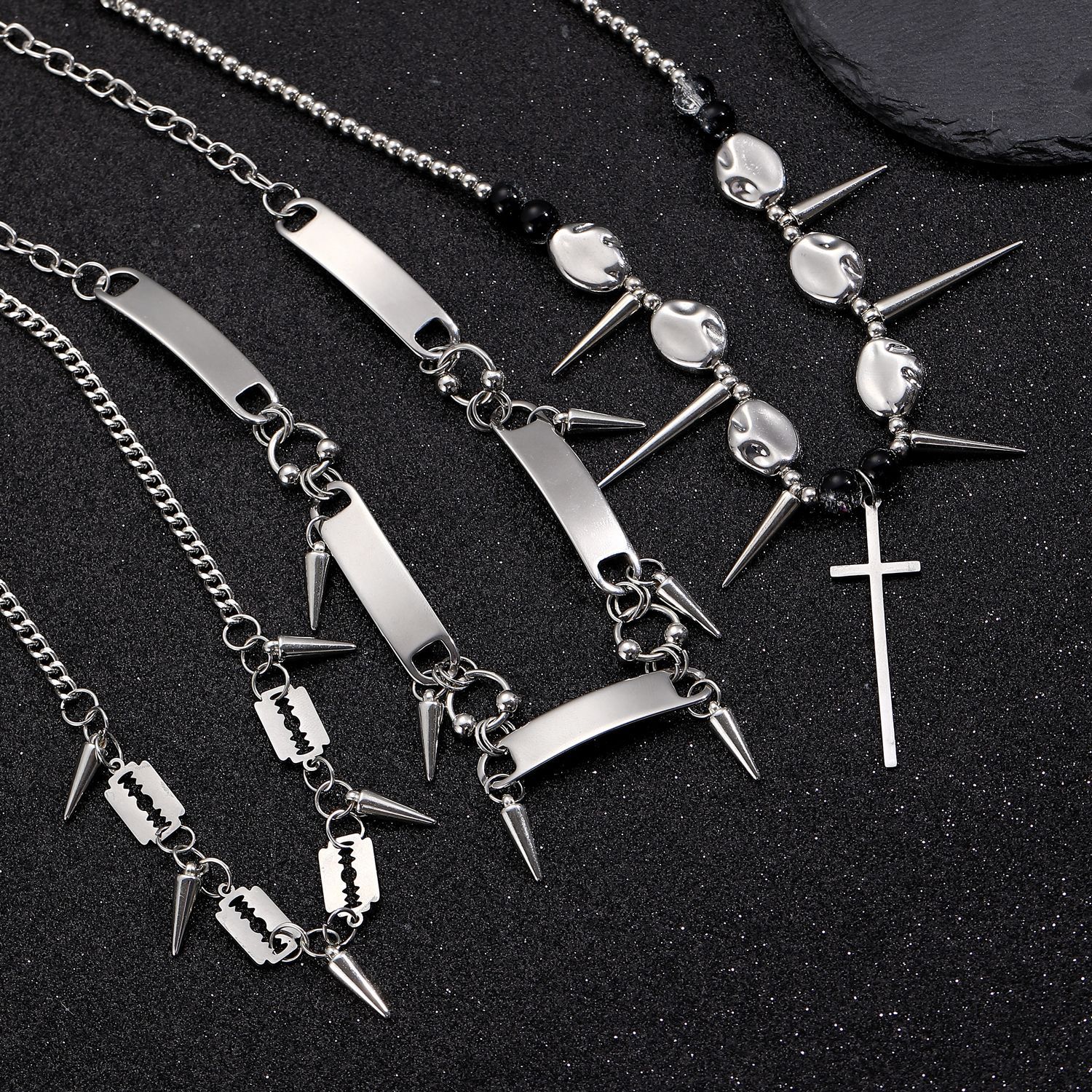 Personality Rivet Cross Clavicle Chain Diablo Gothic Ins Style Niche Exaggerated Necklace Stainless Steel Jewelry for Men and Women
