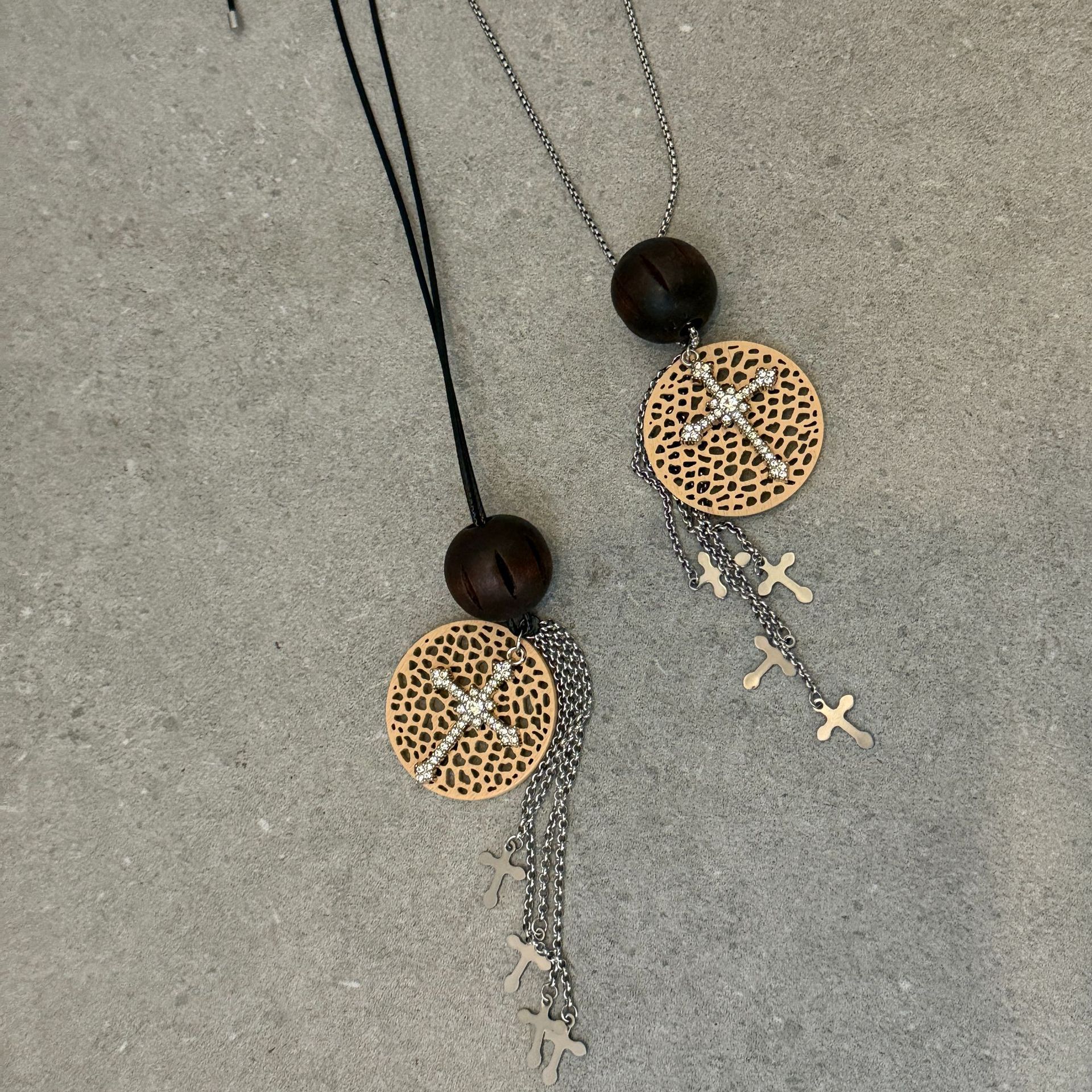 Cross-Border Hollow Wood Chip Cross Combination Wooden Ball Personalized Tassel Necklace Mesh Sweater Chain Aliexpress Amazon