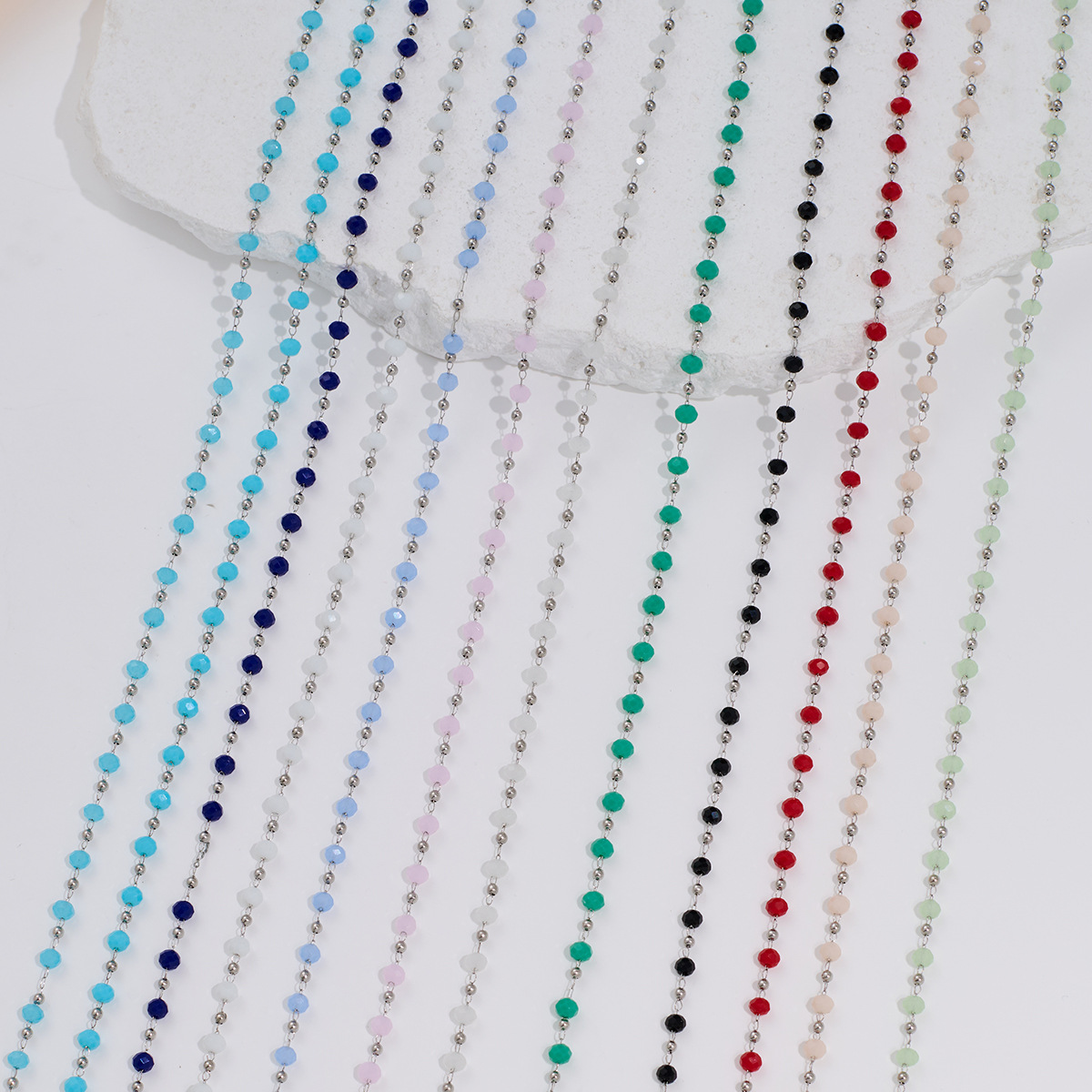 Stainless Steel Colorful Beaded Crystal Chain Bead Chain Titanium Steel Handmade Mixed Colorful Necklace Bracelet DIY Jewelry