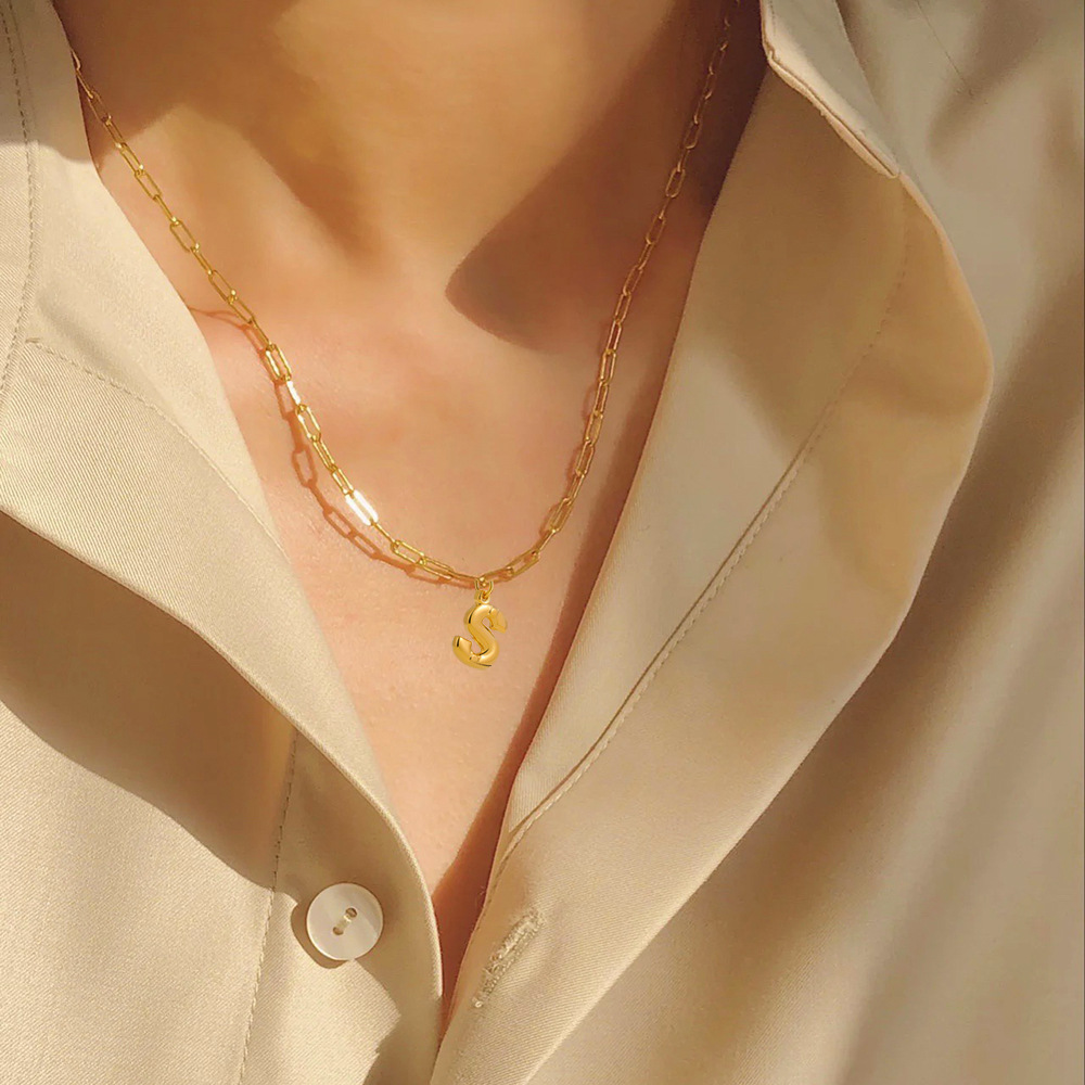 18K Real Gold Stainless Steel Letter Necklace 26 English Letter Necklace Cross-Border Simple Fashion Personalized Necklace for Women
