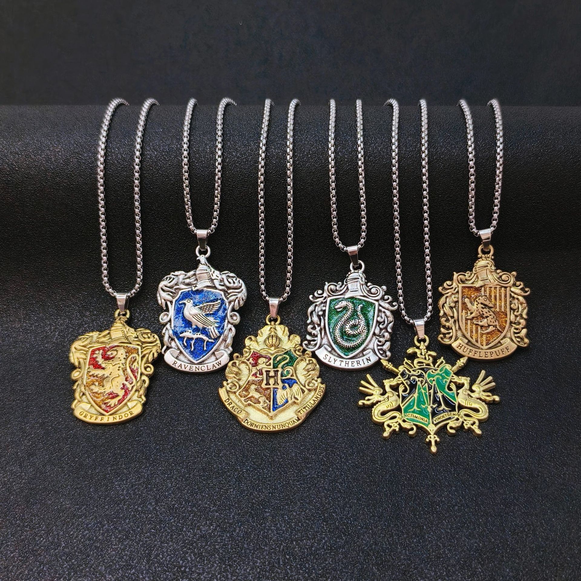 Harry Potter Peripheral Necklace Slytherin Hufflepuff College Style Pendant Retro Personalized Pendant Decoration