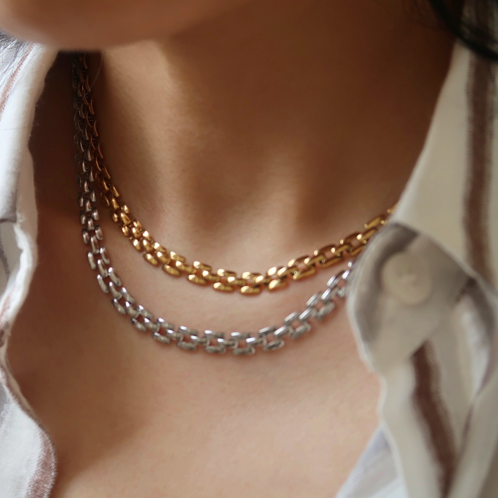European and American Braided Clavicle Chain Gold and Silver Simple Necklace Versatile Necklace French Stainless Steel Mirror Polished Export Goods