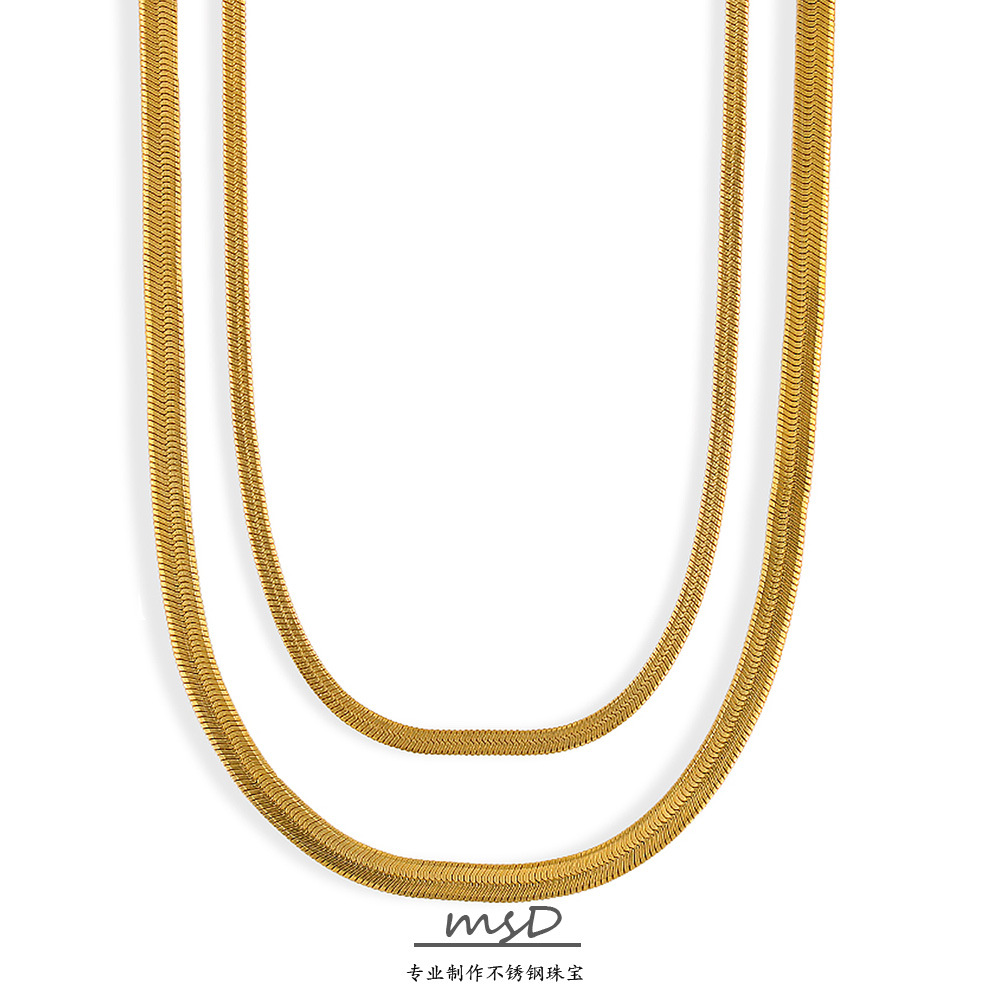 18K color retention real gold long flat cross chain diy titanium steel necklace women's side box chain stainless steel cladosin chain