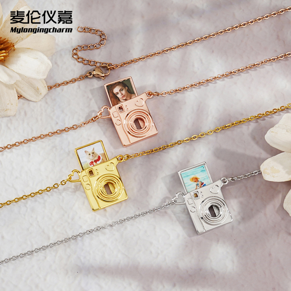 Cross-Border European and American Personalized One-Piece Customized Photo Clavicle Chain Jewelry Niche Creative Polaroid Camera Necklace for Women