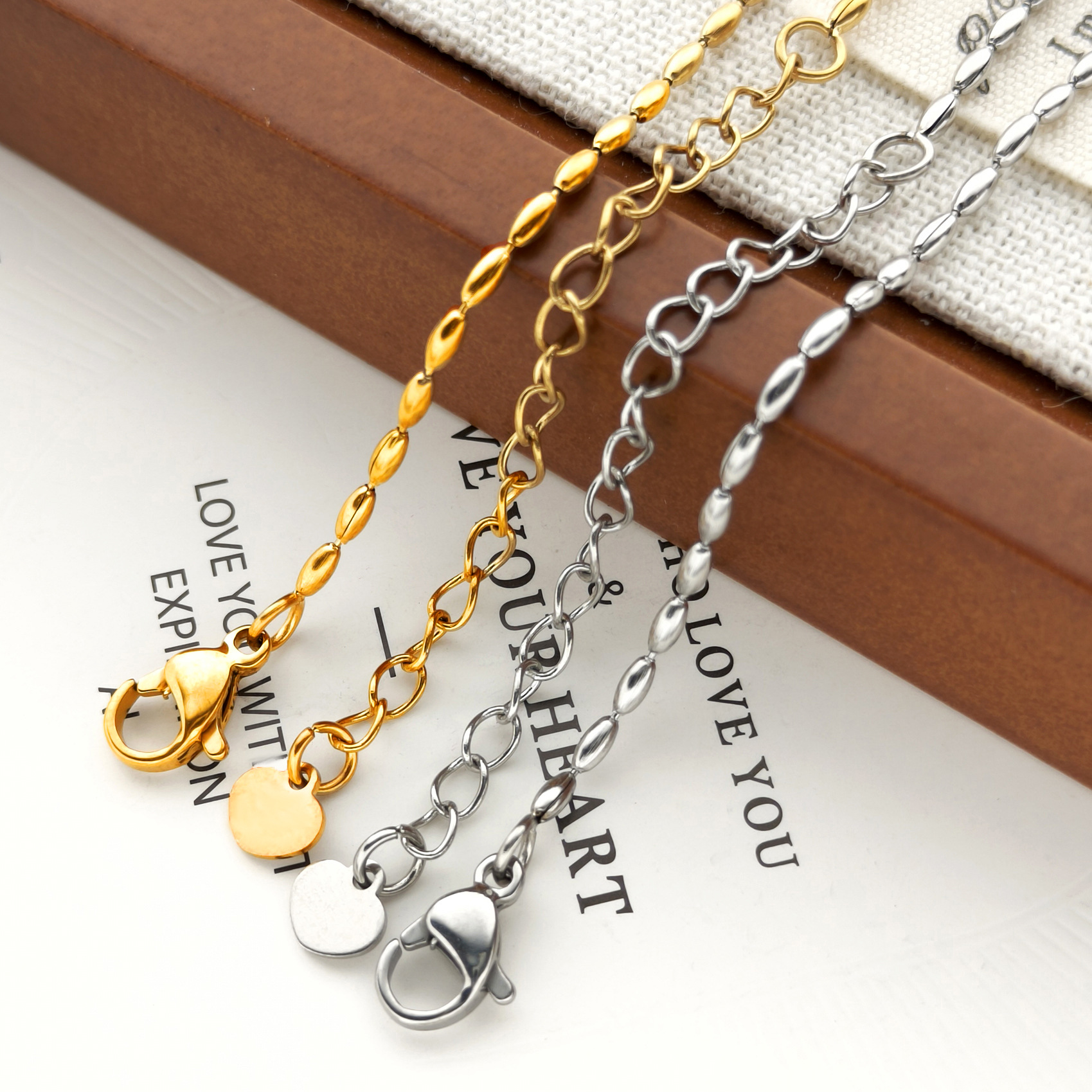 Wholesale 304 Stainless Steel Chain Furnace Vacuum Electroplating Rice Beads Semi-Finished Chain Versatile Non-Fading Pendant Chain