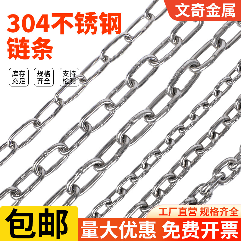 Chain 304 Stainless Steel Chain Short Ring Long Ring Lifting Tag Light Guardrail Pet Dog Swing Clothes Drying Galvanized Iron Chain