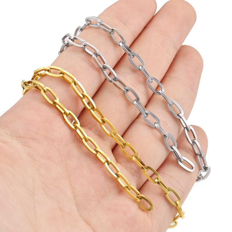 Chain with Short Holes, Cross Oval Accessories, Titanium Steel Stainless Steel Chain, Square Wire Oval Semi-Finished Product, Faded Chain