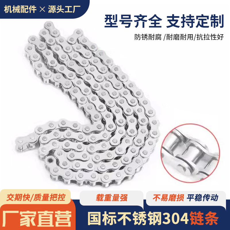 08B Supply 304 Roller Chain Industrial Stainless Steel Chain Precision Single Row Double Row Short Section Distance Roller Infusion Plate