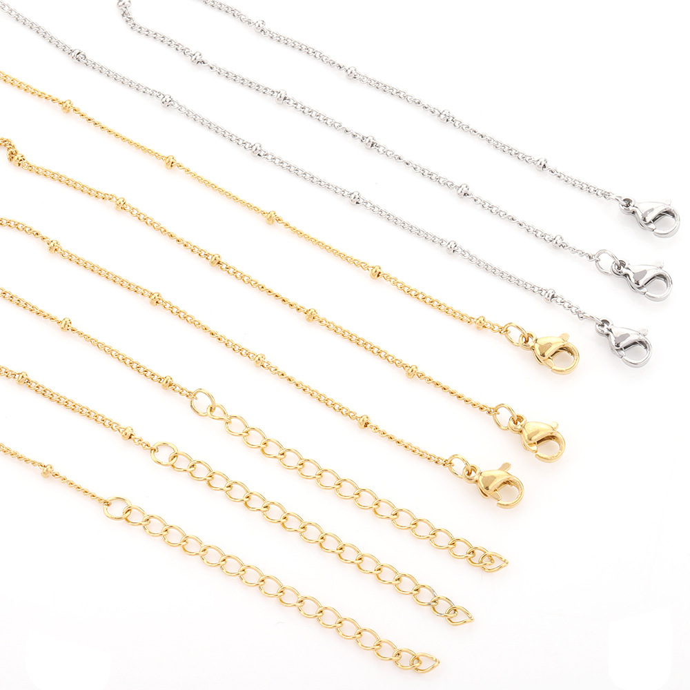 Color-preserving Stainless Steel 45+5cm Side Clip Bead Necklace 18k Gold Clavicle Chain Spacer Bead Chain Finished Chain Buckle