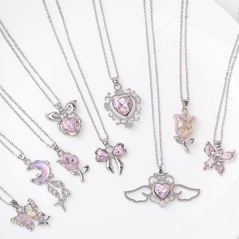 Summer New Moon Tulip Heart Butterfly Pendant Women's Necklace Accessories Design Clavicle Chain DIY Accessories