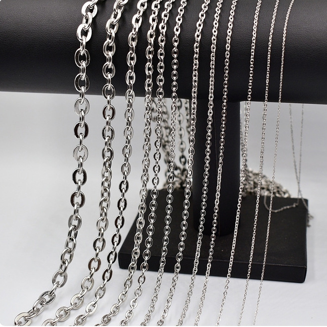 Factory wholesale titanium steel flat cross chain shiny jewelry necklace diy chain 18K gold clavicle o chain strip