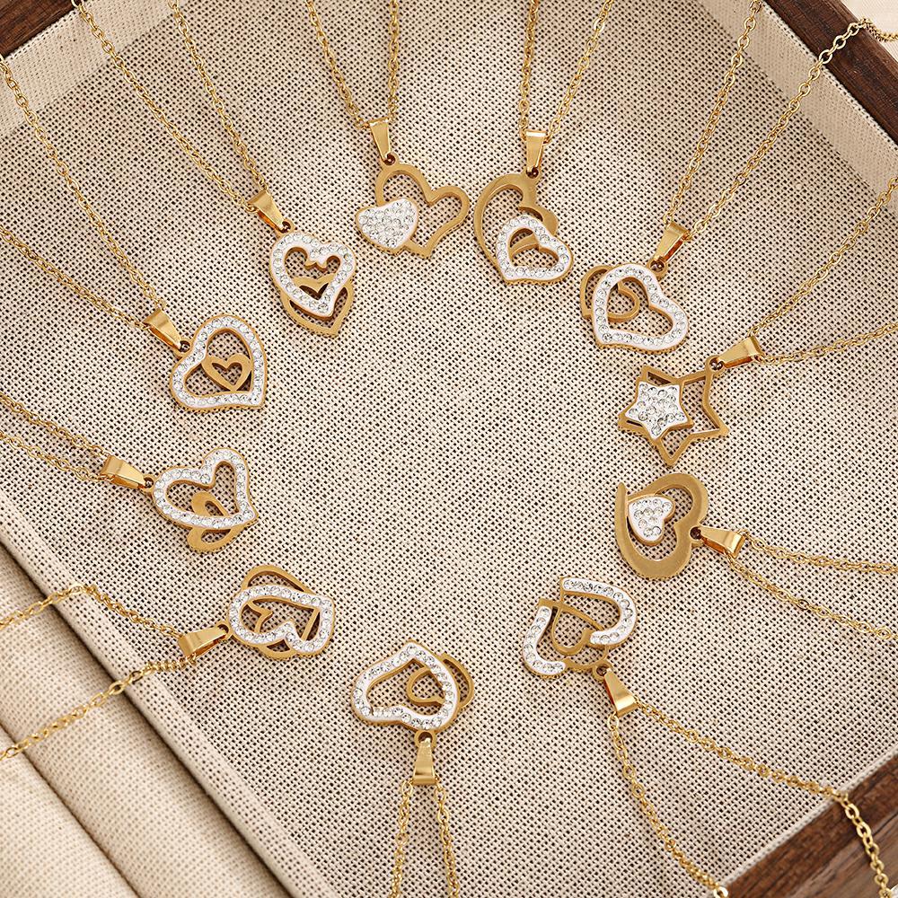 Light Luxury, Simple, Loving, Full of Diamonds, Normcore Style Necklace, Women's Fashionable Titanium Steel Non-Fading Internet Celebrity Clavicle Chain Jewelry Wholesale