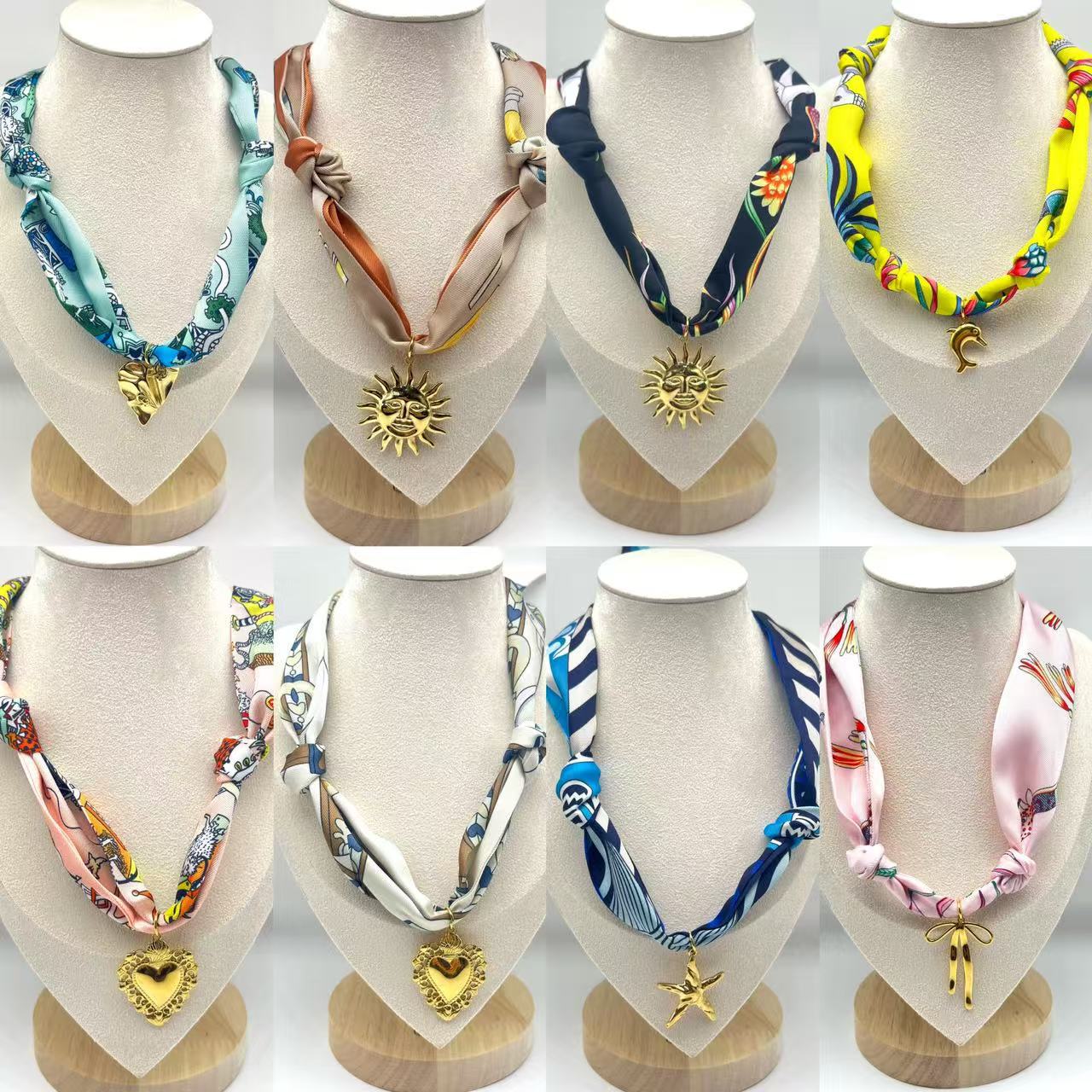 Original Design Handmade Colorful Silk Scarf Style Stainless Steel Oil Drop Necklace with Pendant Necklace European and American Colorful
