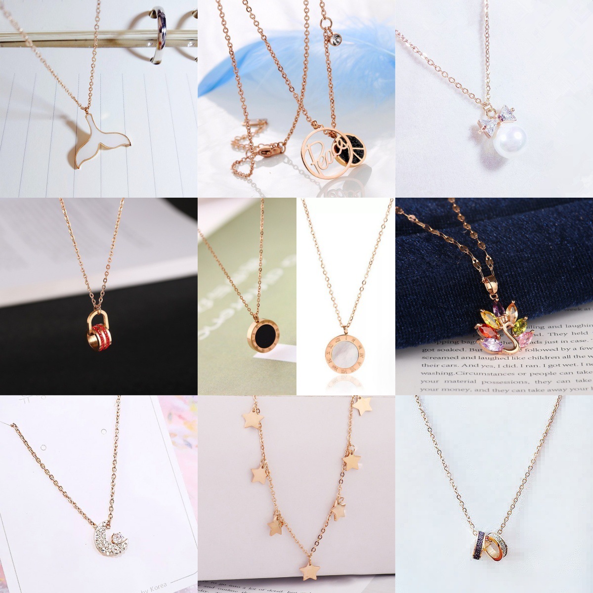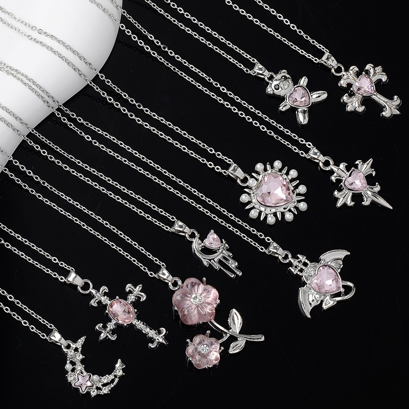 Sweet Design Moon Cross Bear Flower Necklace Women's Fashion Versatile Clothing Heart Clavicle Chain Jewelry