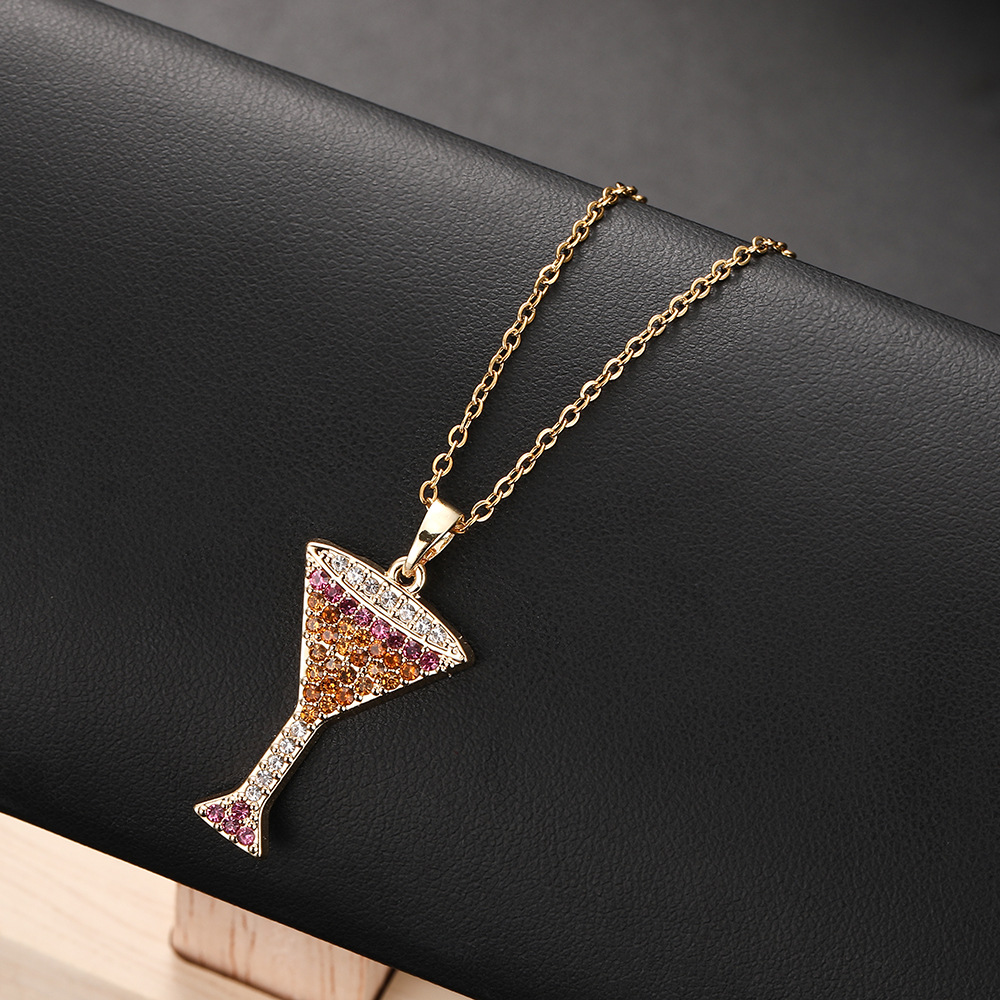 European and American Colorful Diamond-Encrusted Wine Glass Pendant Necklace Trendy Personality Light Luxury Fashion Clavicle Chain Gift Accessory