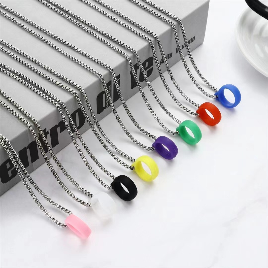 Suitable for Yueke Smoke Cigarette Rod Hanging Chain with 13mm Silicone Ring Anti-lost Atomization Rod Universal Stainless Steel Necklace