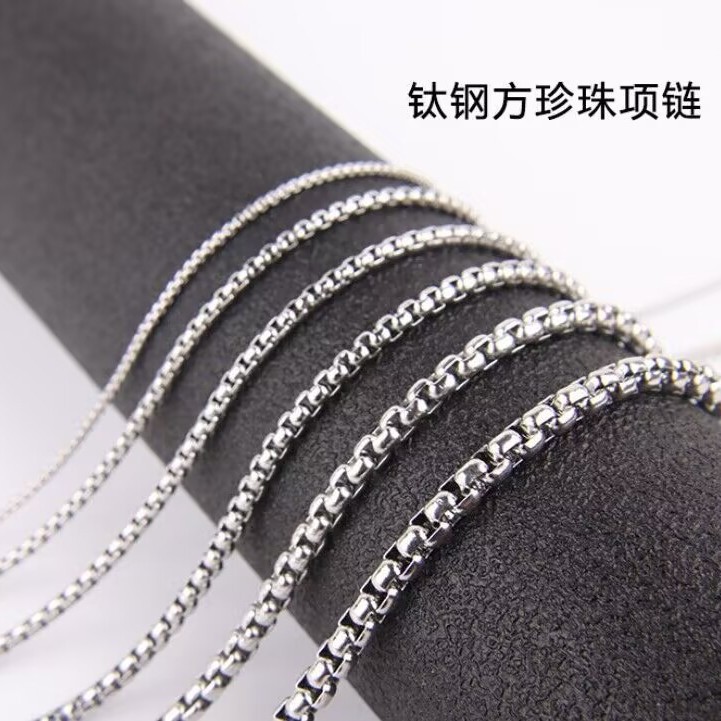 Square Pearl Necklace Titanium Steel Square Box with Chain Stainless Steel Chain Corn Ornament Chain Men's DIY Accessories Fashion
