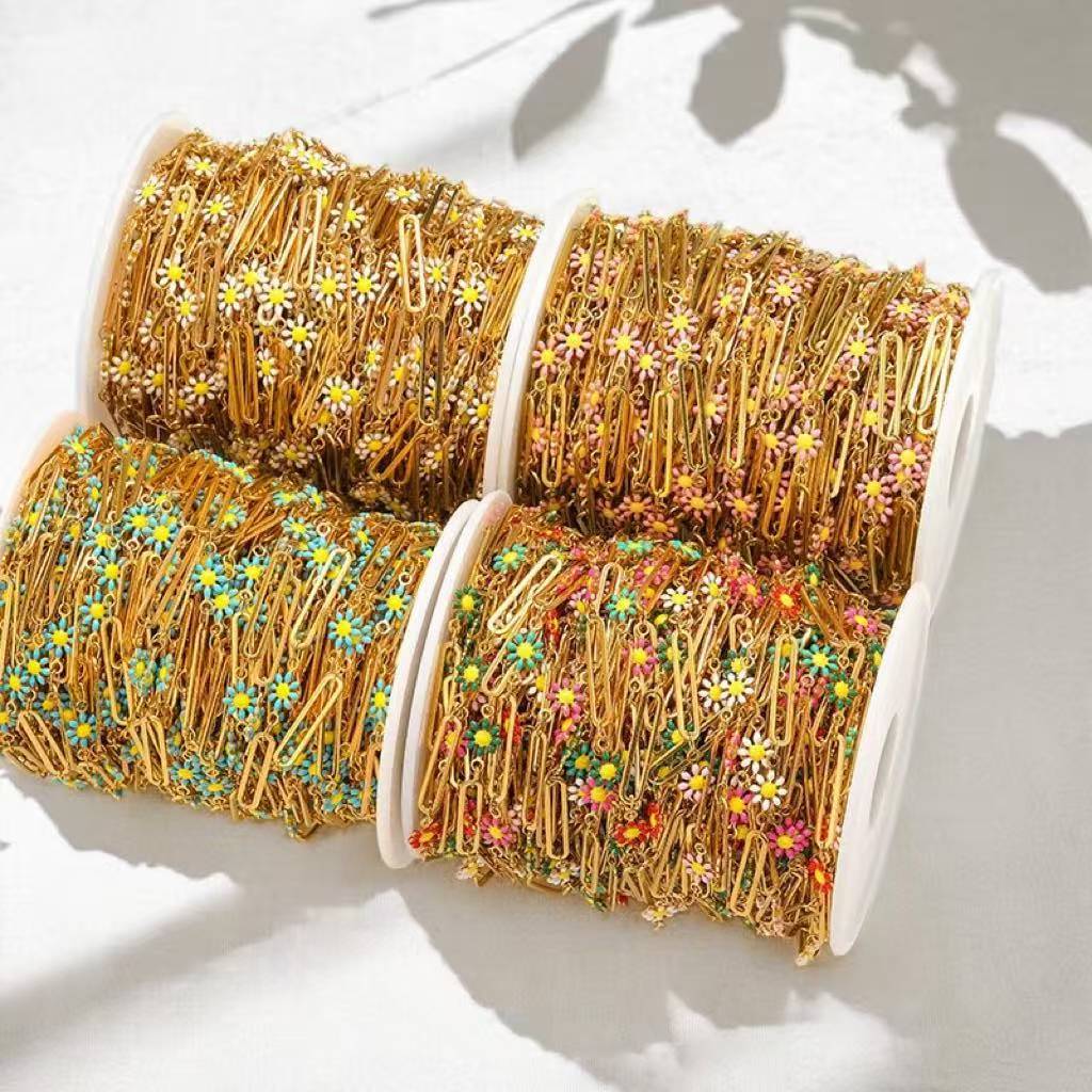 Hot Selling Mixed Color Oil Dripping Stainless Steel Chain Geometric Daisy 18K Gold Color-Preserving Cross Loose Chain DIY Necklace Bracelet